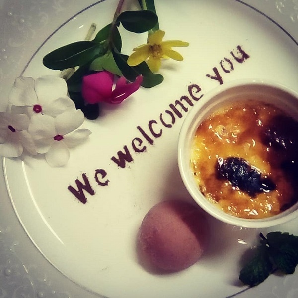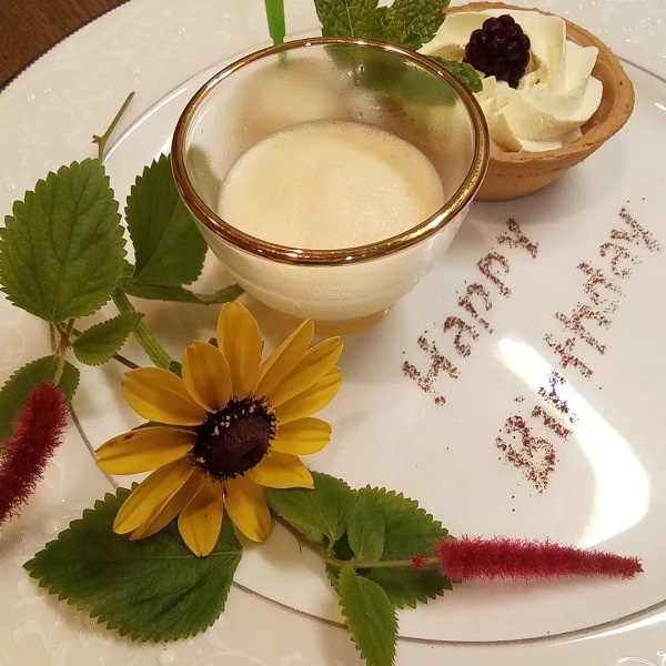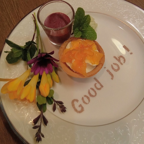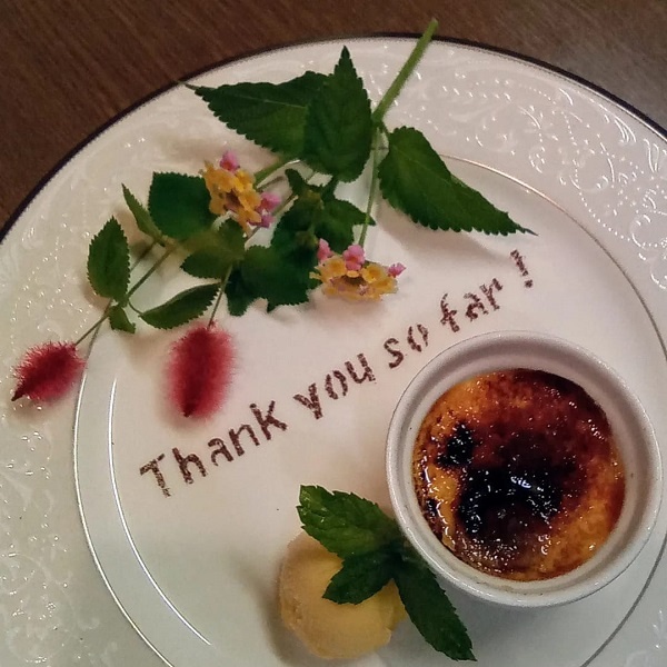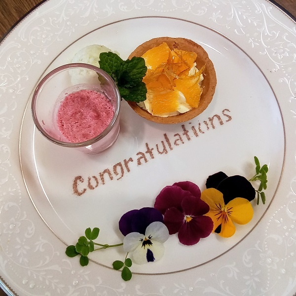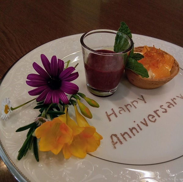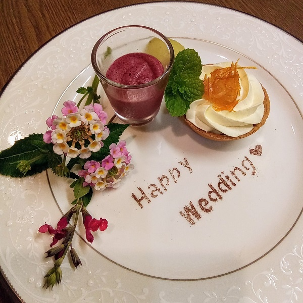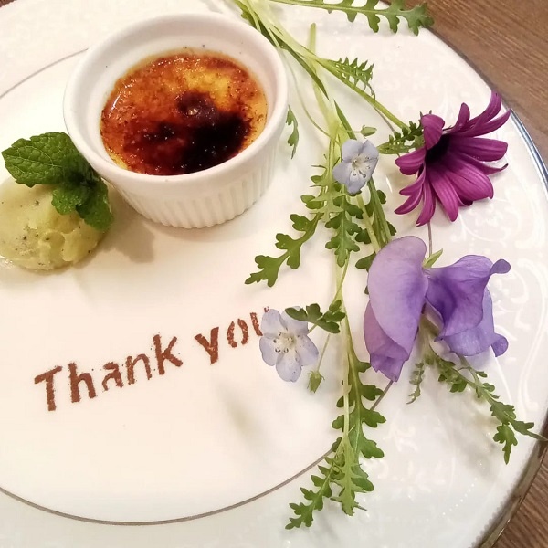 デザートプレートに『メッセージとマダムが育てたお花を飾って』サプライズしませんか?(デザートや飾る花は その時よって変わりますので あくまでも参考で)
